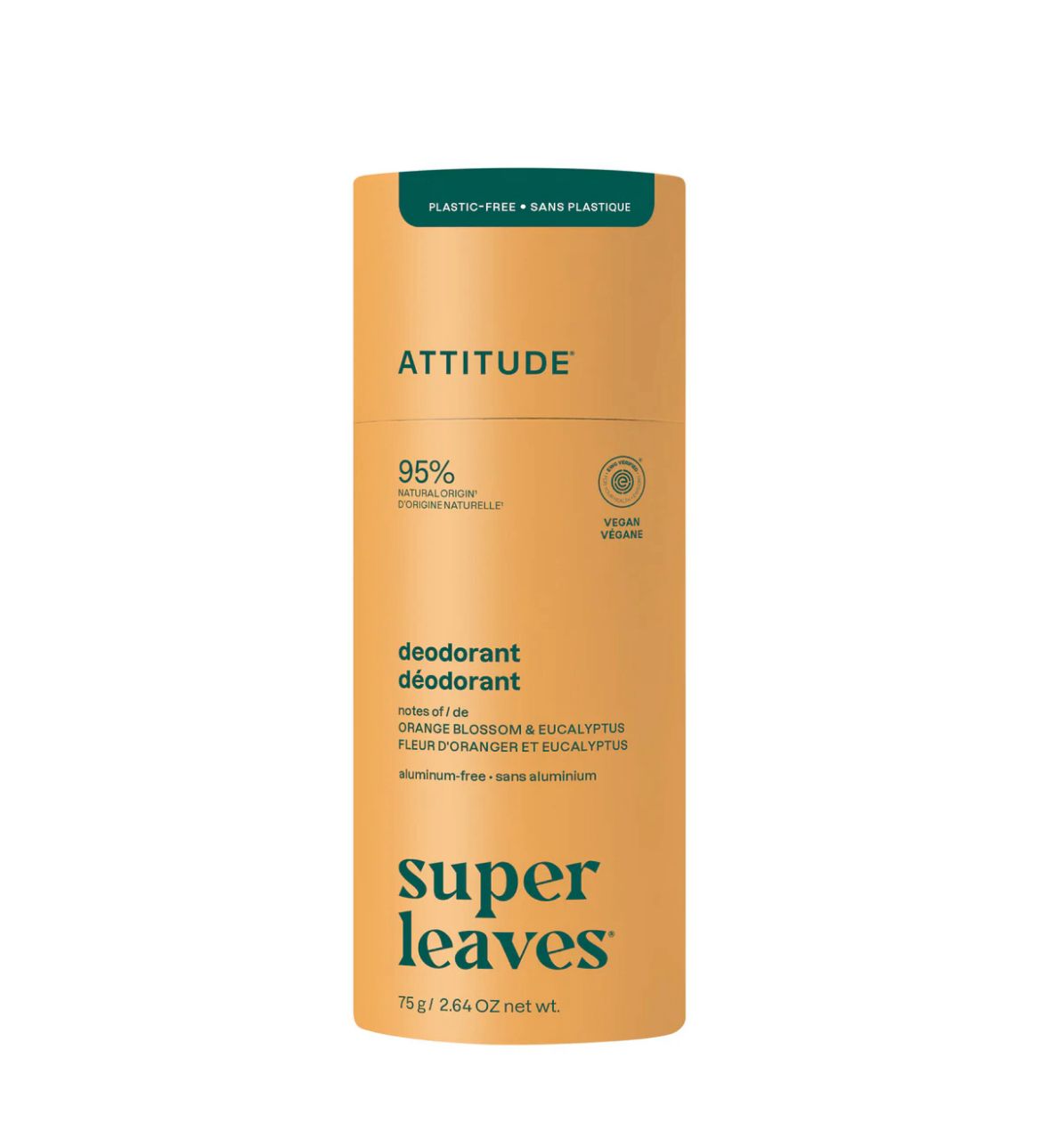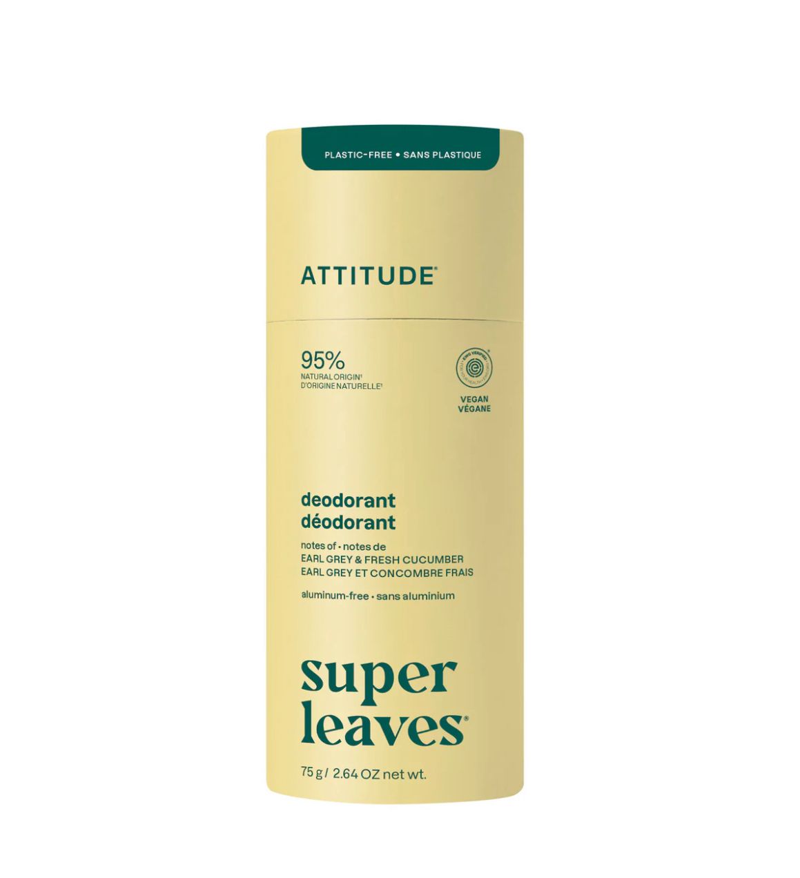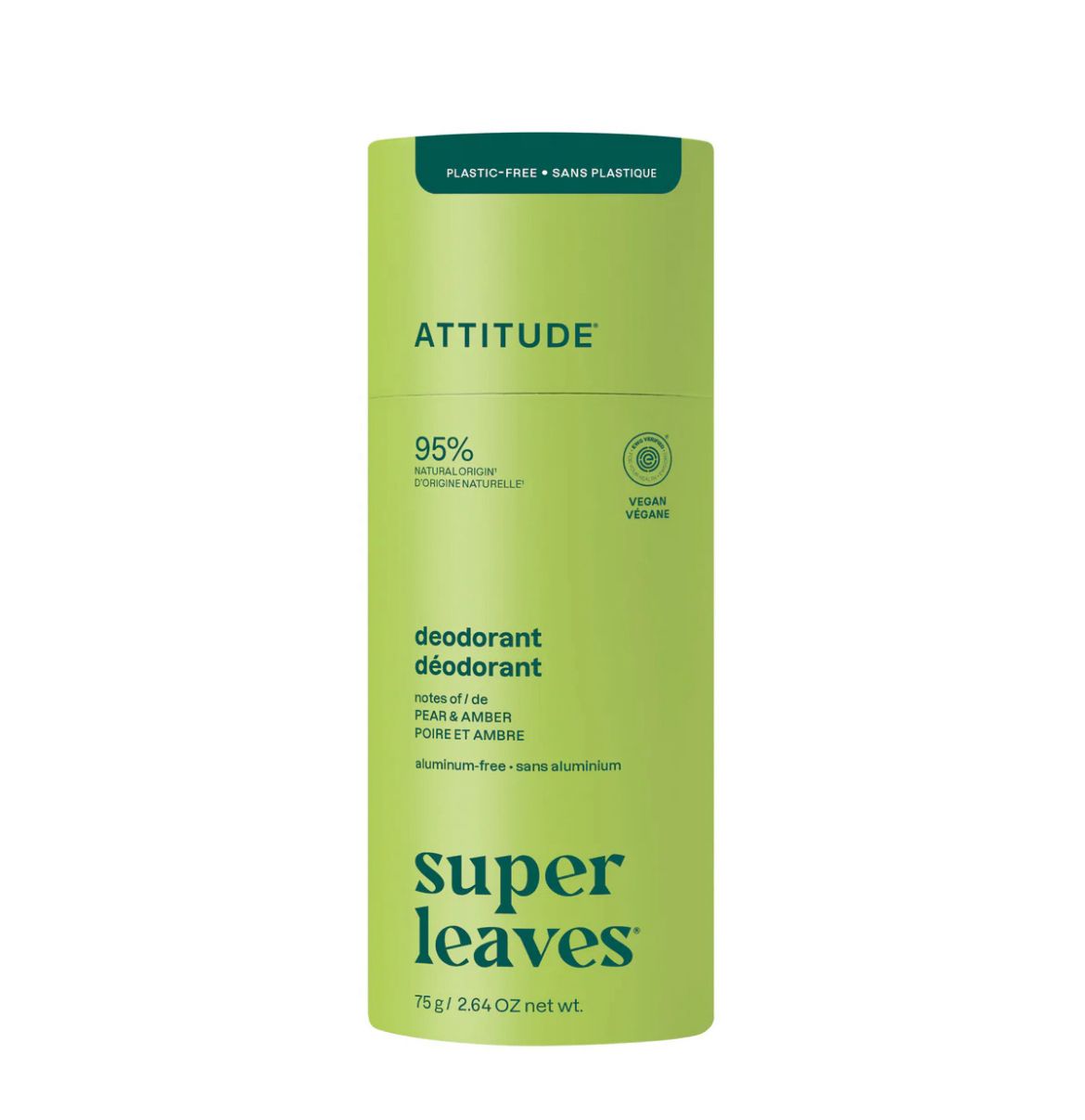 El desodorante natural libre de plástico de Attitude utiliza un empaque biodegradable, es libre de aluminio y esta elaborado con ingredientes naturales.